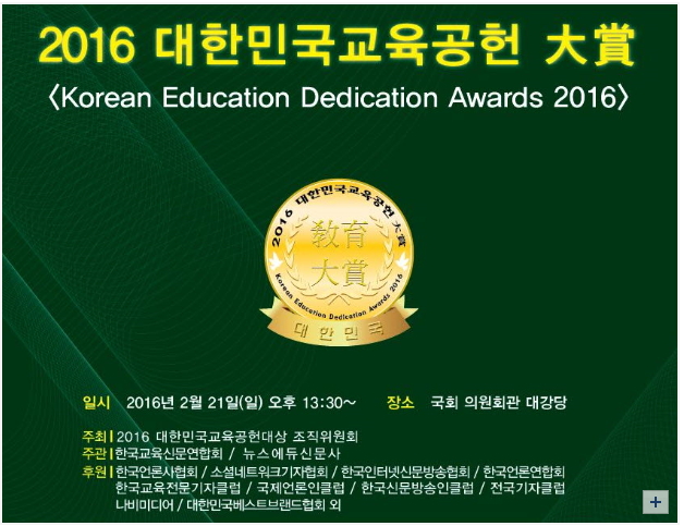[¿Â ±¹¹ÎÀÌ ±âÀÚÀÎ Çѱ¹½Ã¹Î±âÀÚÇùȸ ±è¼øº¹ ] Áö³ 2015³â ÇÑÇØ ´ëÇѹα¹ÀÇ ±³À°°øÇå¿¡ Çå½ÅÇÑ ±³À°ÀÚ¿Í ±³À°±â¾÷¿¡ ´ëÇÑ ½Ã»ó½ÄÀÌ °³ÃֵȴÙ. ¡®´ëÇѹα¹±³À°°øÇå´ë»óÁ¶Á÷À§¿øÈ¸(´ëȸÀå ÀÓ´ö±â ´ëÇѹα¹ °Ç±¹À¯°øÀÚȸ ȸÀå, Á¶Á÷À§¿øÀå ÁÖµ¿´ã Çѱ¹¾ð·Ð»çÇùȸ ÀÌ»çÀå, ¼±Á¤À§¿øÀå ÀÌâ¿ Çѱ¹¾ð·Ð»çÇùȸ ¿¬ÇÕÃëÀ纻ºÎÀå, ¿î¿µÀ§¿øÀå ÀÌÈñ¼± Çѱ¹¾ð·Ð»çÇùȸ »ç¹«Ã³Àå)¡¯´Â Çѱ¹±³À°½Å¹®¿¬ÇÕȸ¿Í ´º½º¿¡µà½Å¹®»ç¿Í °øµ¿ÁÖ°ü, »ç´Ü¹ýÀÎ Çѱ¹¾ð·Ð»çÇùȸ ÈÄ¿øÀ¸·Î ¡®2016 ´ëÇѹα¹±³À°°øÇå´ë»ó(Korea Education dedication Awards 2016)¡¯ ½Ã»ó½ÄÀ» °ÅÇàÇÑ´Ù.